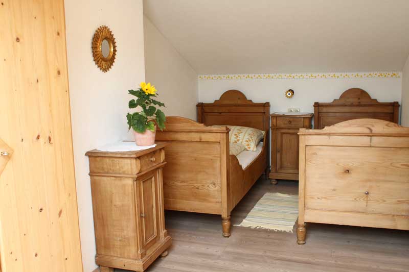 Die doppelstöckige Ferienwohnung Sonnenblume ist ideal für den Urlaub mit der Familie geeignet. Vor allem der südseitige Balkon ist bei unseren Gästen besonders beliebt. Das Wohnzimmer und die komplett eingerichtete Kochecke befindet sich auf der selben Etage wie das Elternschlafzimmer und das Badezimmer. Ihre Kinder beziehen die Kinderstube im Dachgeschoss mit zwei getrennten Betten und eigenem Badezimmer.